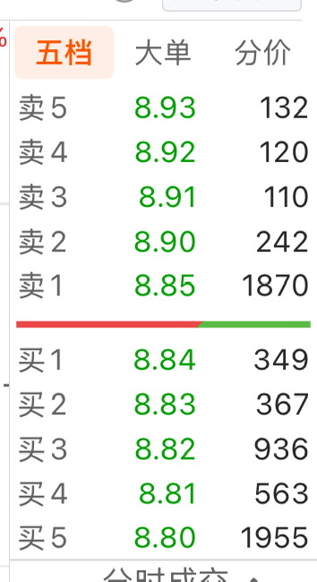 这就是来试盘的。压在8.9以下四个价位。