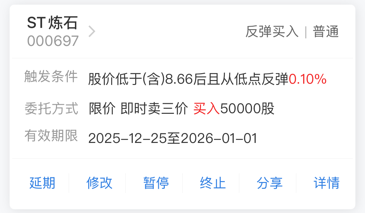 零敲碎打地买。然后8.66挂一个条件单。我可以熬。没有30%以上的血就别跟川国资