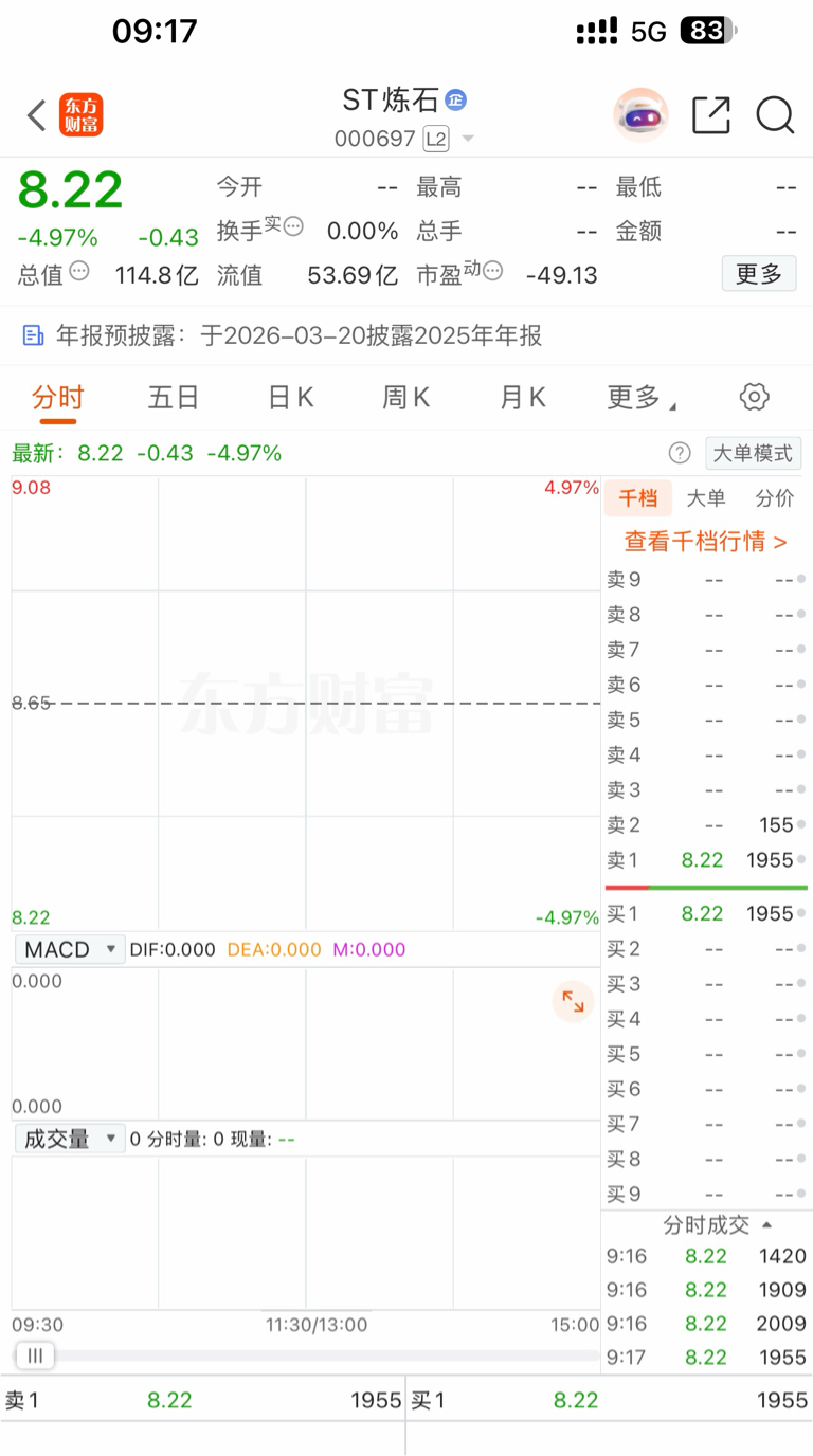 $ST炼石(SZ000697)$ 每天早上9.15-9.20都有2000手左右挂跌停,你别撤单啊,全给你吃了