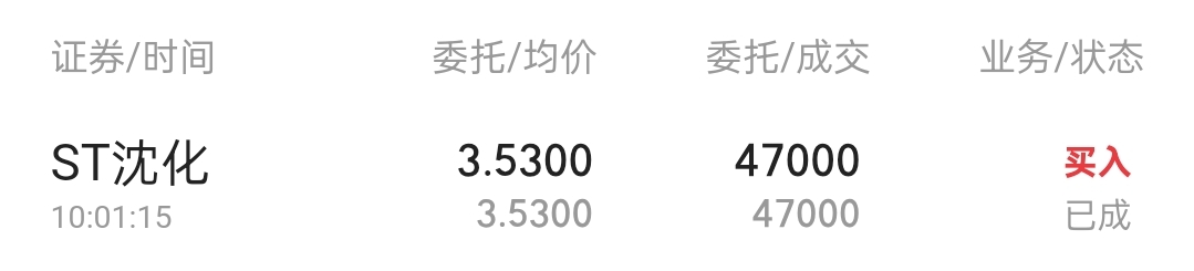 $ST沈化(SZ000698)$ 小仓位买入继续玩一玩。