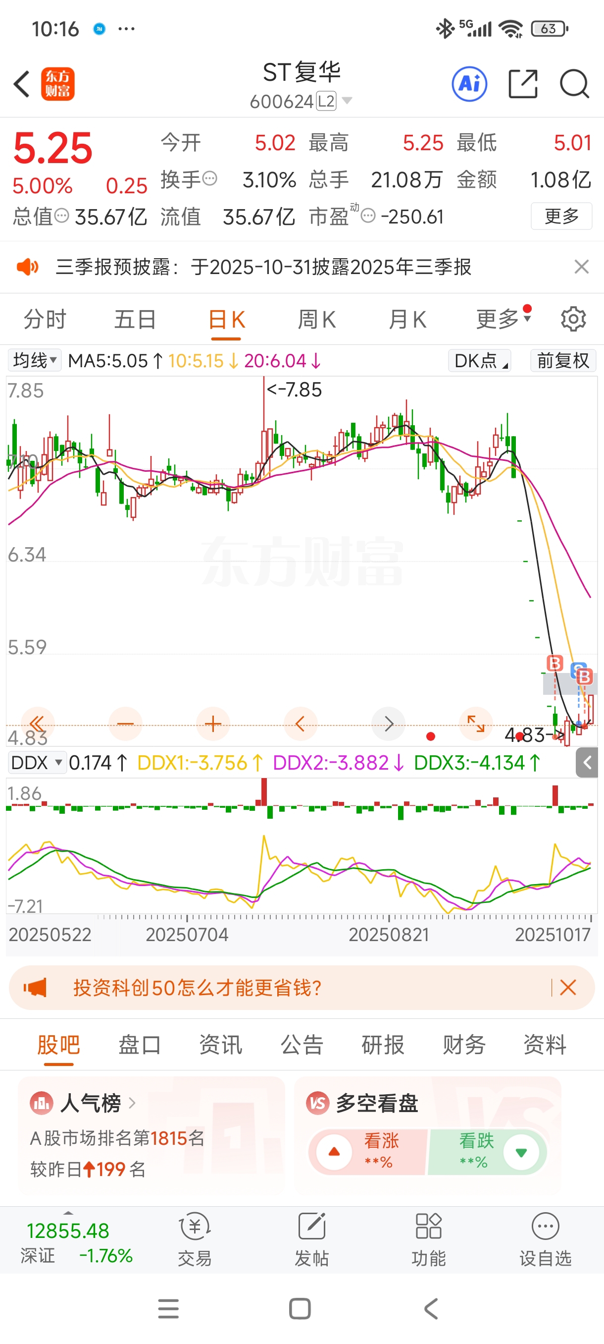 没仓位了,目前st涨的太多了,新开板的人手来一点,新华锦跟复华都涨停了,跟上啊,