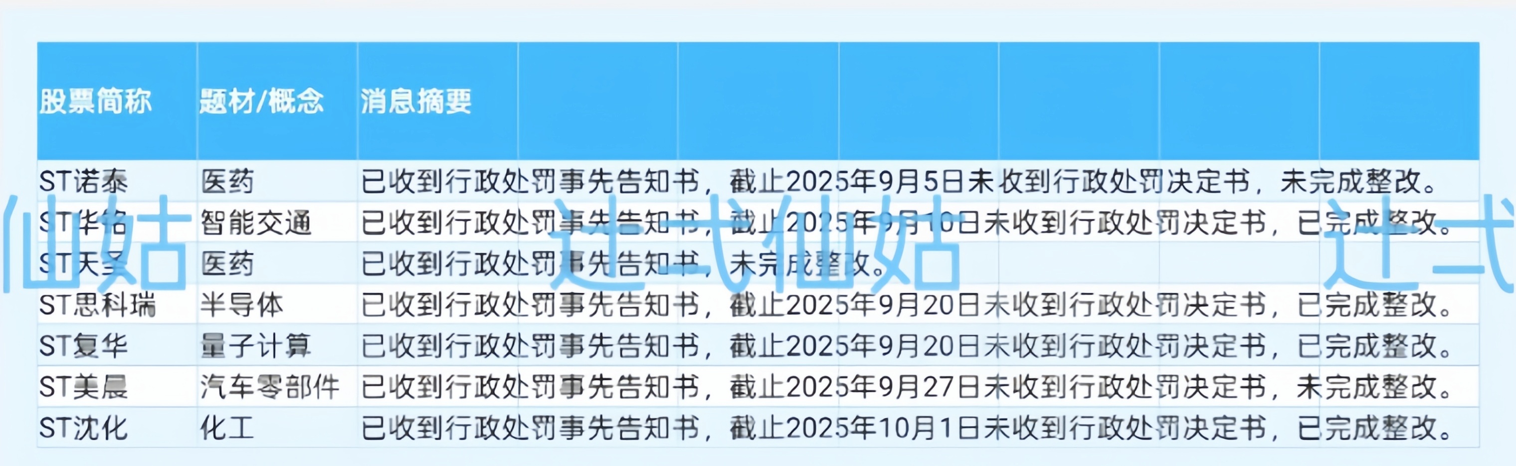$ST沈化(SZ000698)$ $*ST正平(SH603843)$ $*ST东易(SZ002713)$ 收到事先告知书未收到处罚决定书各股一览。
