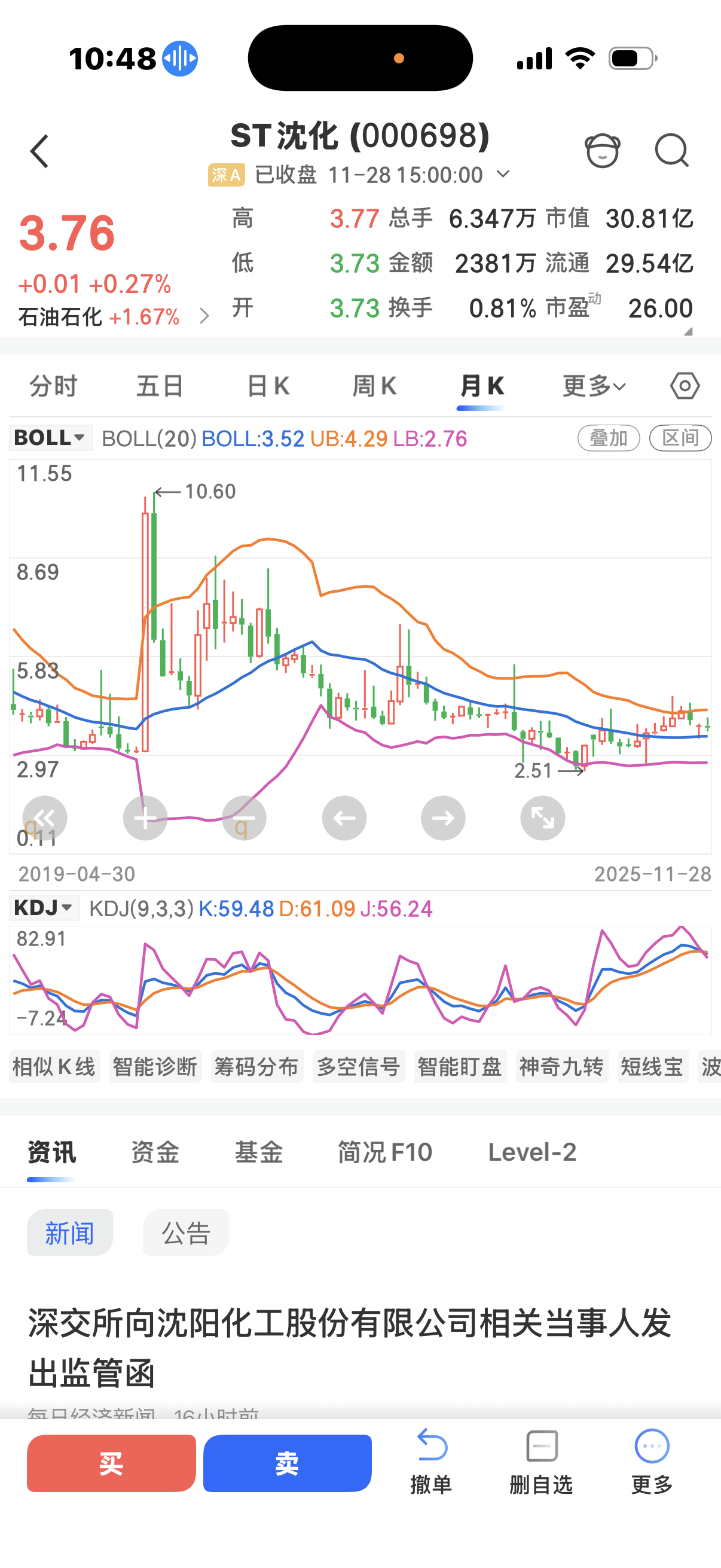 从月K分析强支撑位在2.76元附近……被采取8年证券市场禁入措施死未
