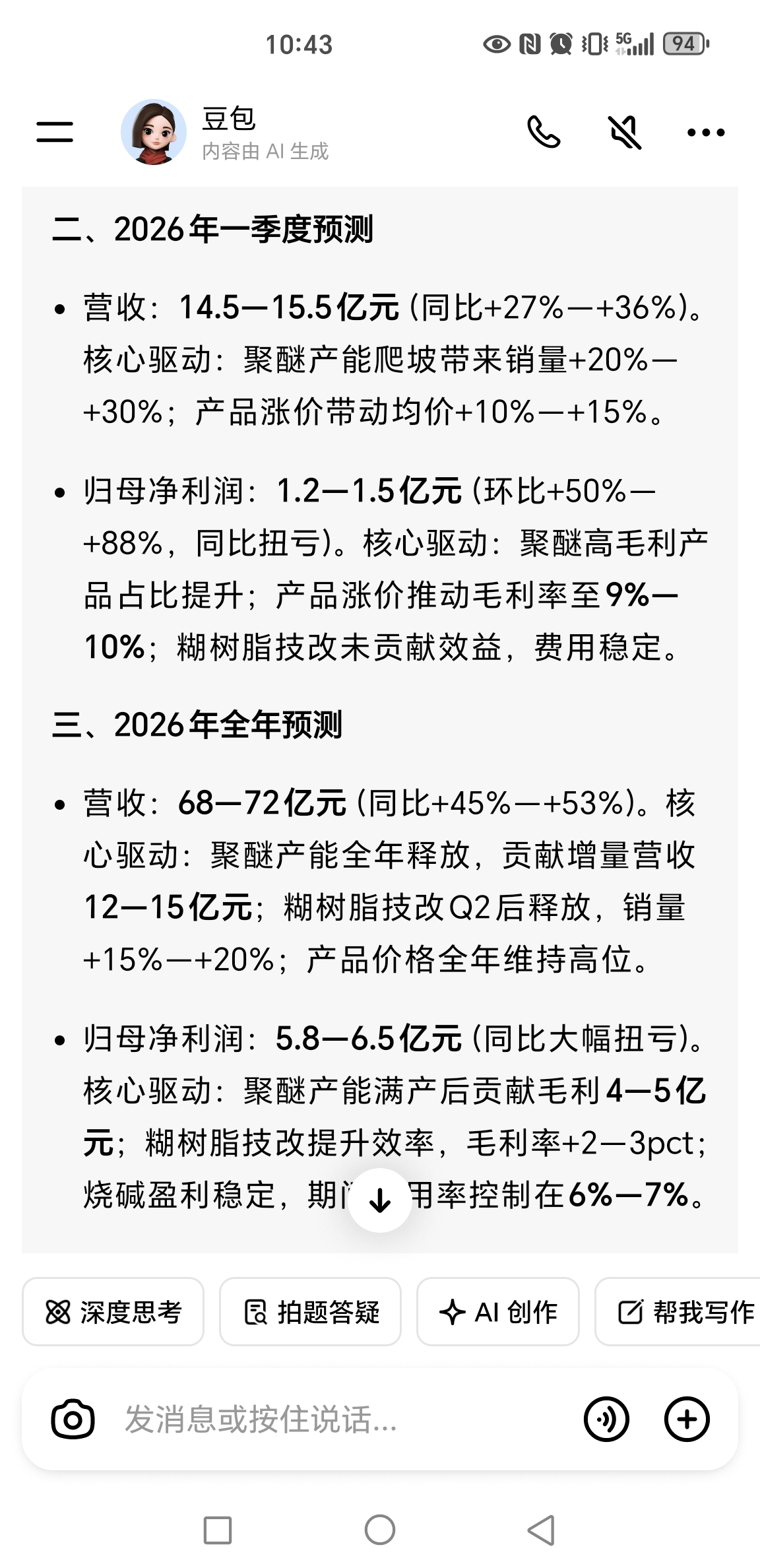 $ST沈化(SZ000698)$ 根据 26年沈化业绩预测,各位觉得市值多少合理。