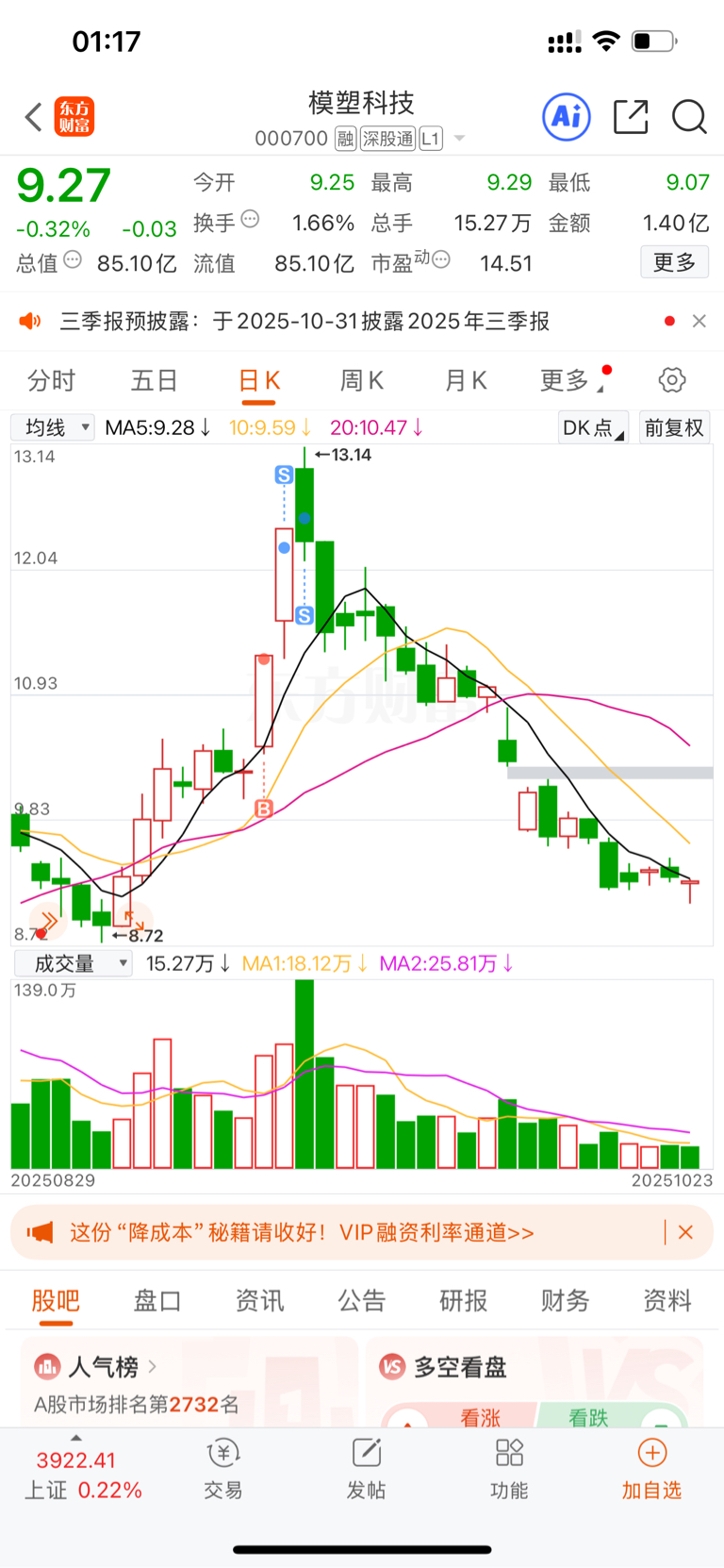 $模塑科技(SZ000700)$ 还好那时候不贪,该跑就跑,这回看简直精准逃顶