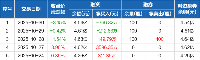 模塑科技:融资净偿还766.82万元,融资余额4.54亿元(10-30)