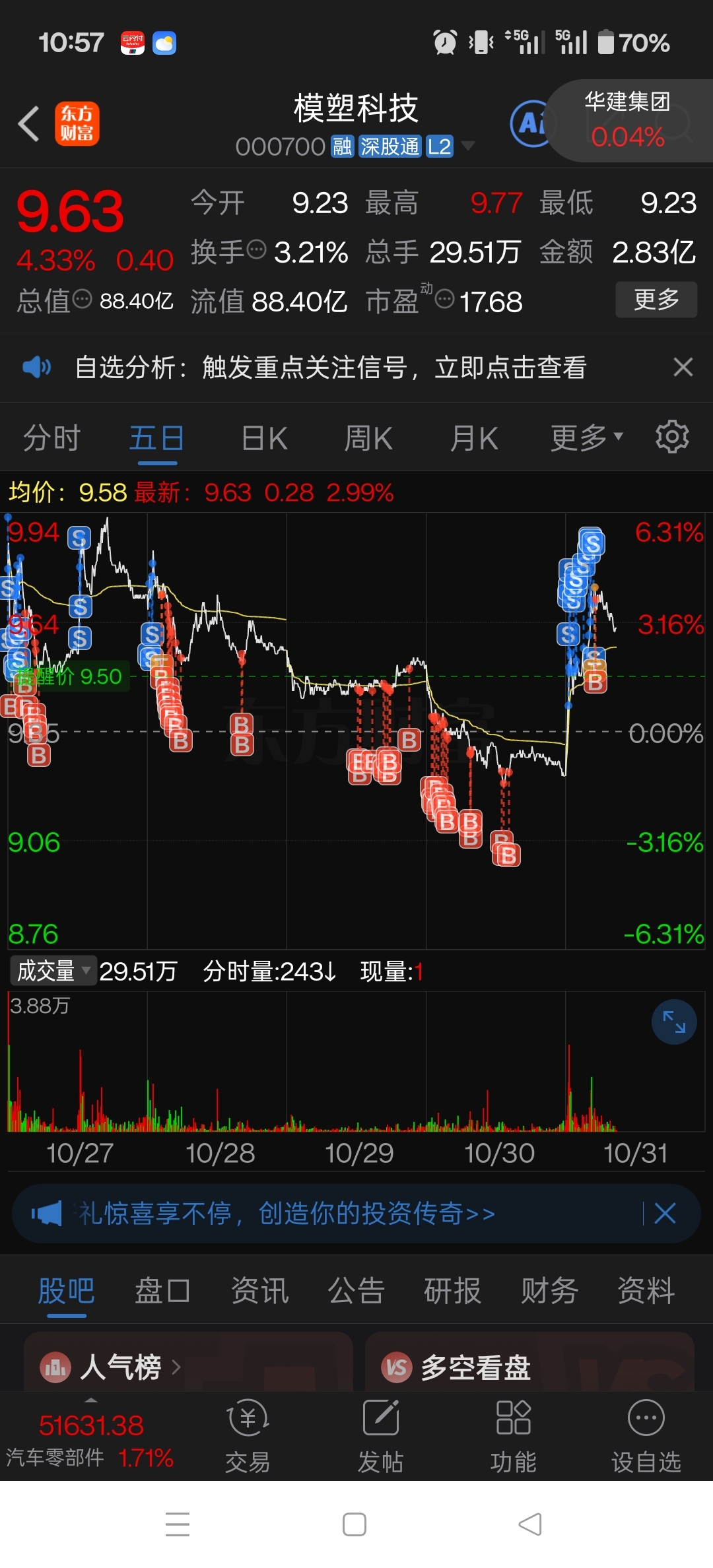 $模塑科技(SZ000700)$ 10元进来,天天折腾,T五个点利润出来了终于