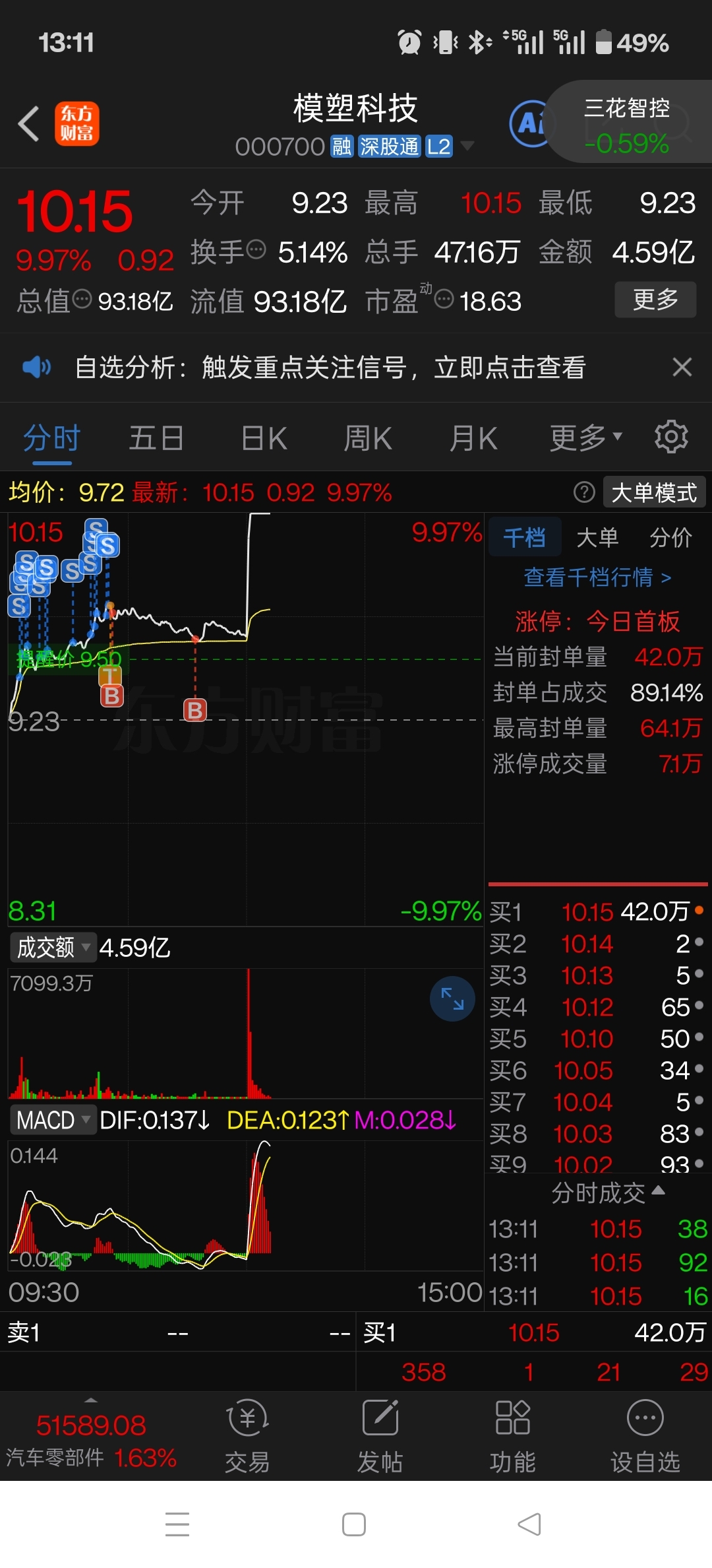 $模塑科技(SZ000700)$ 不好意思又吸回来一点,聊胜于无