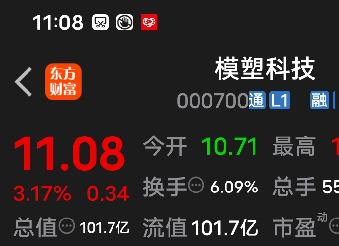 $模塑科技(SZ000700)$ 11:08分,同时间同步
