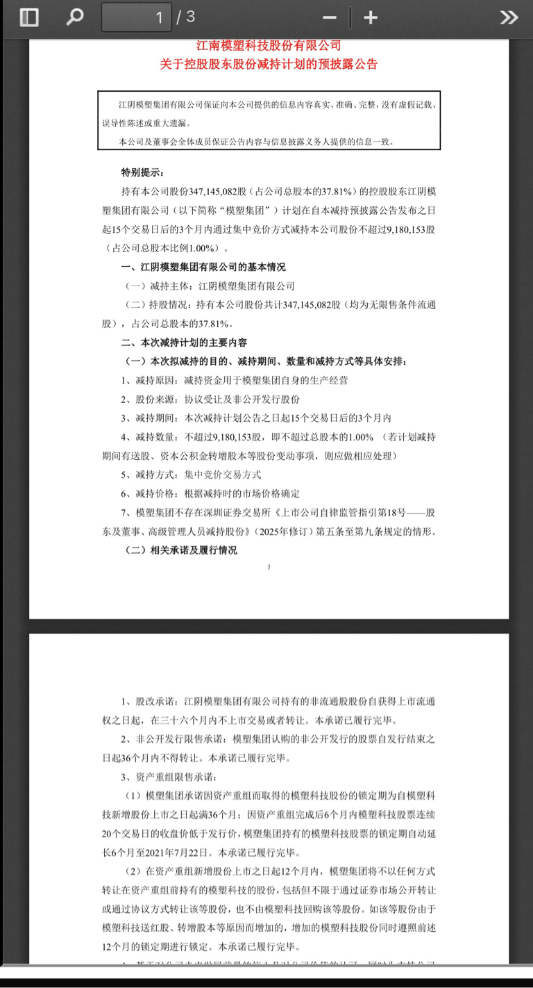 $模塑科技(SZ000700)$ 这烂公司,你发减持公告你不发到明处,公开,这妥妥的诈骗。有人管管这公司么,股民血汗钱呀。