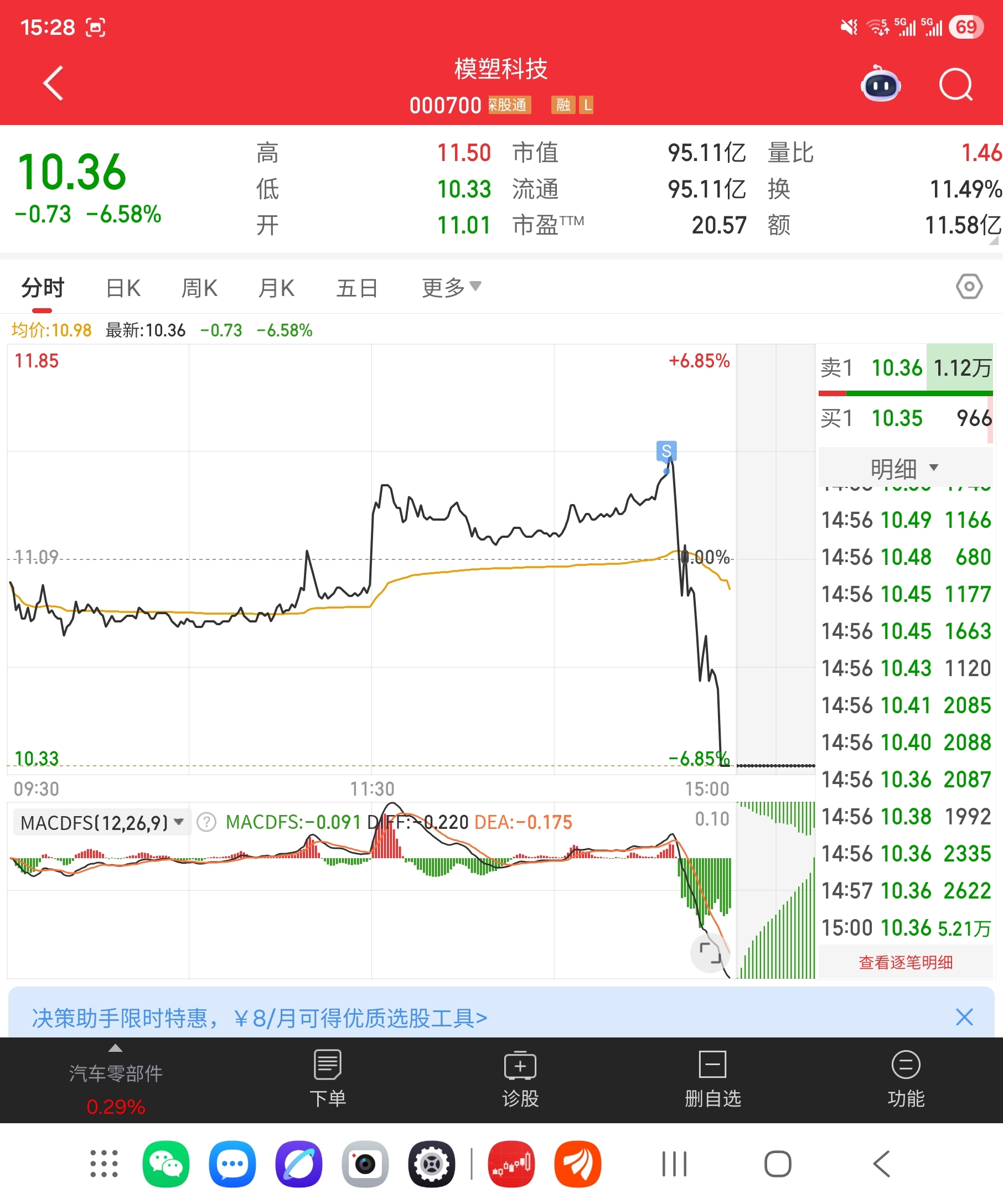 $模塑科技(SZ000700)$ 快出公告,跌停到8块了,我好接你回来。