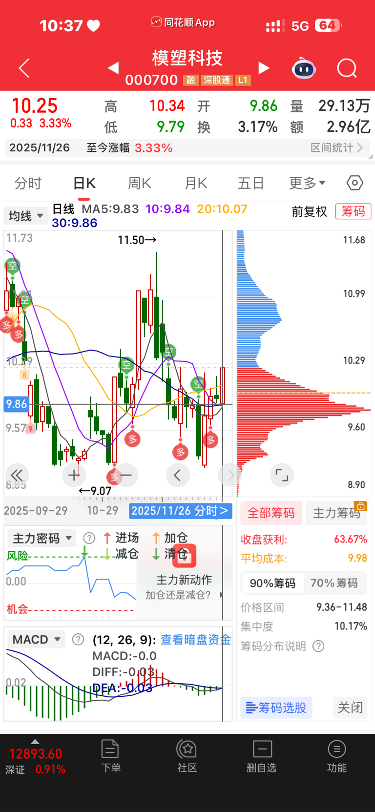 模式内的票,底部筹码集中,热点还可以,短线压力位10.34。今天是标杆线或者启动