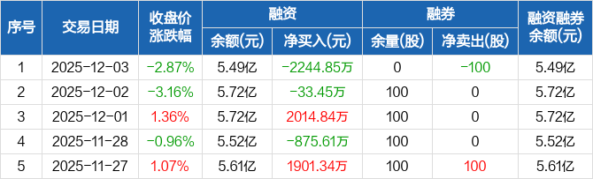 模塑科技:融资净偿还2244.85万元,融资余额5.49亿元(12-03)