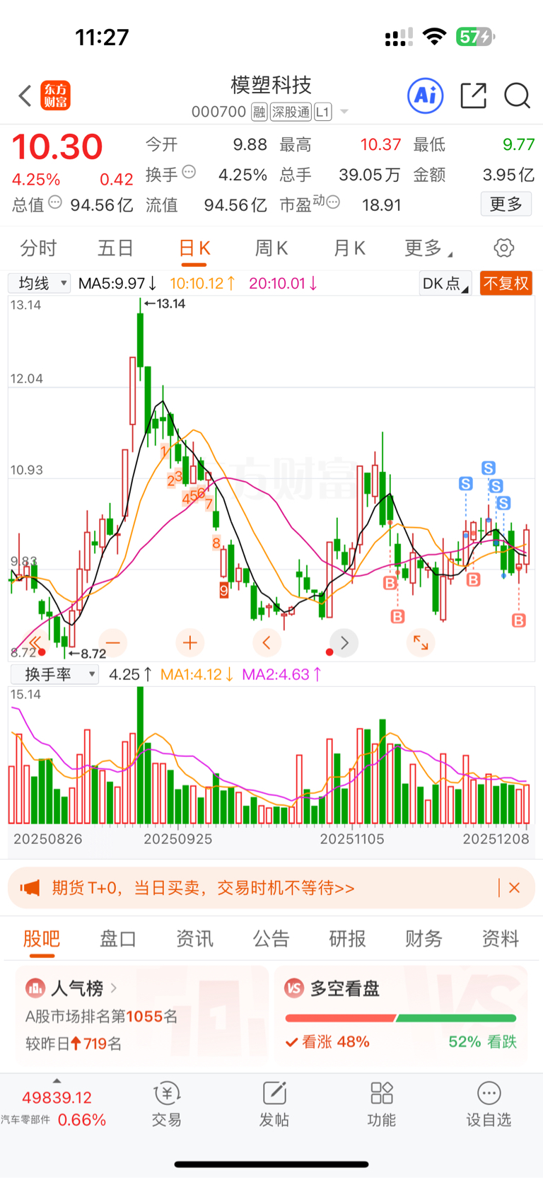 $模塑科技(SZ000700)$ 兄弟们,这波操作给几分?