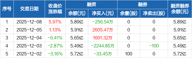 模塑科技:融资净偿还256.54万元,融资余额5.89亿元(12-08)