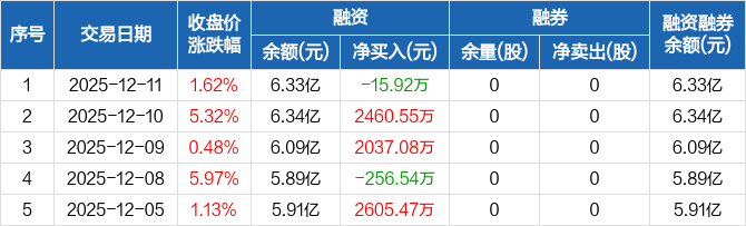 模塑科技:融资净偿还15.92万元,融资余额6.33亿元(12-11)
