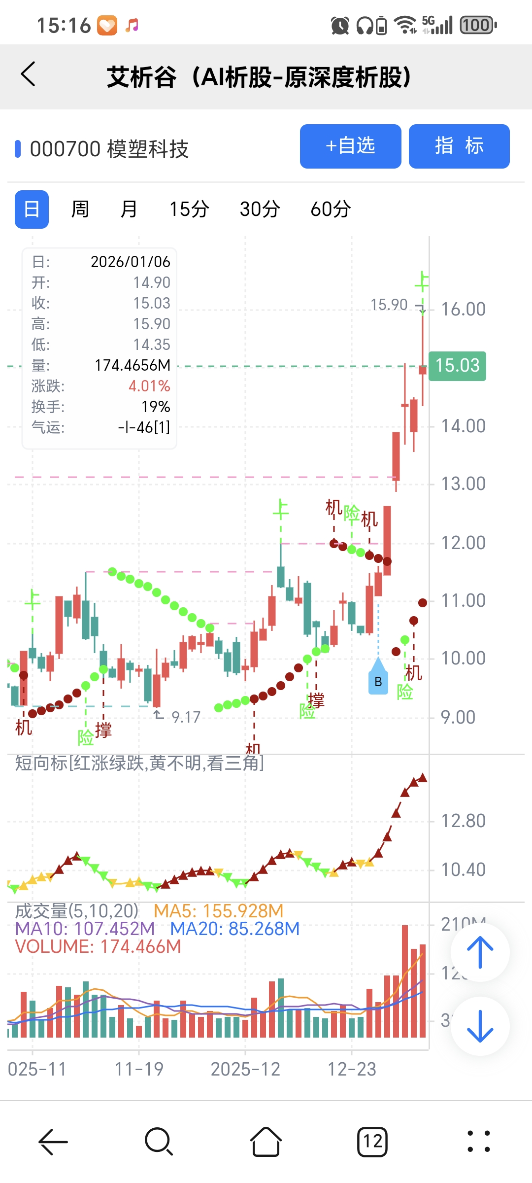 AI模型选股,量化指标识别关键点,简单技术分析确定买卖点,结合量化和人工综合运用,才能有优势。 模塑科技