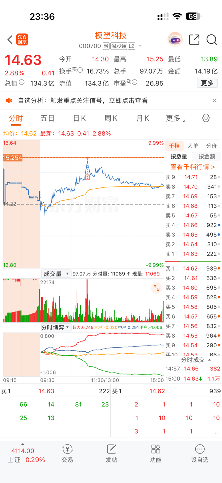 $模塑科技(SZ000700)$ 第一次买到最高点,纪念一下