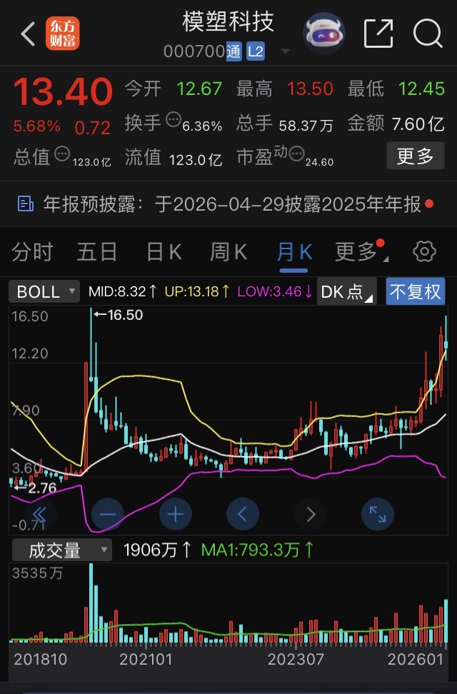 $模塑科技(SZ000700)$ 周五最后的疯狂,5块再见