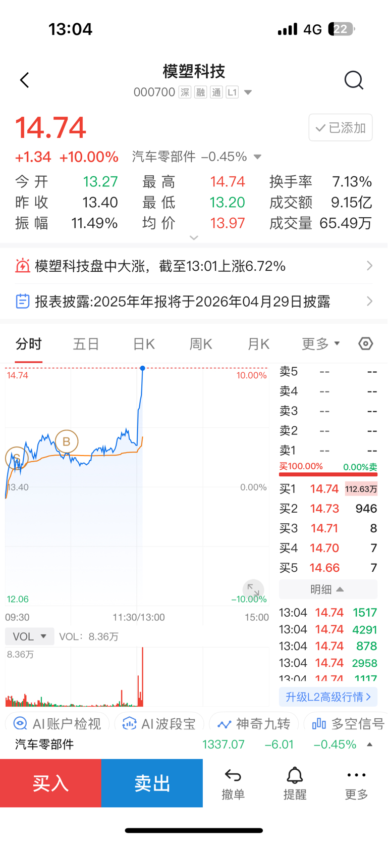 $模塑科技(SZ000700)$ 幸亏接回来了,没听股吧某些人说什么M顶,什么macd死叉,还是要相信自己