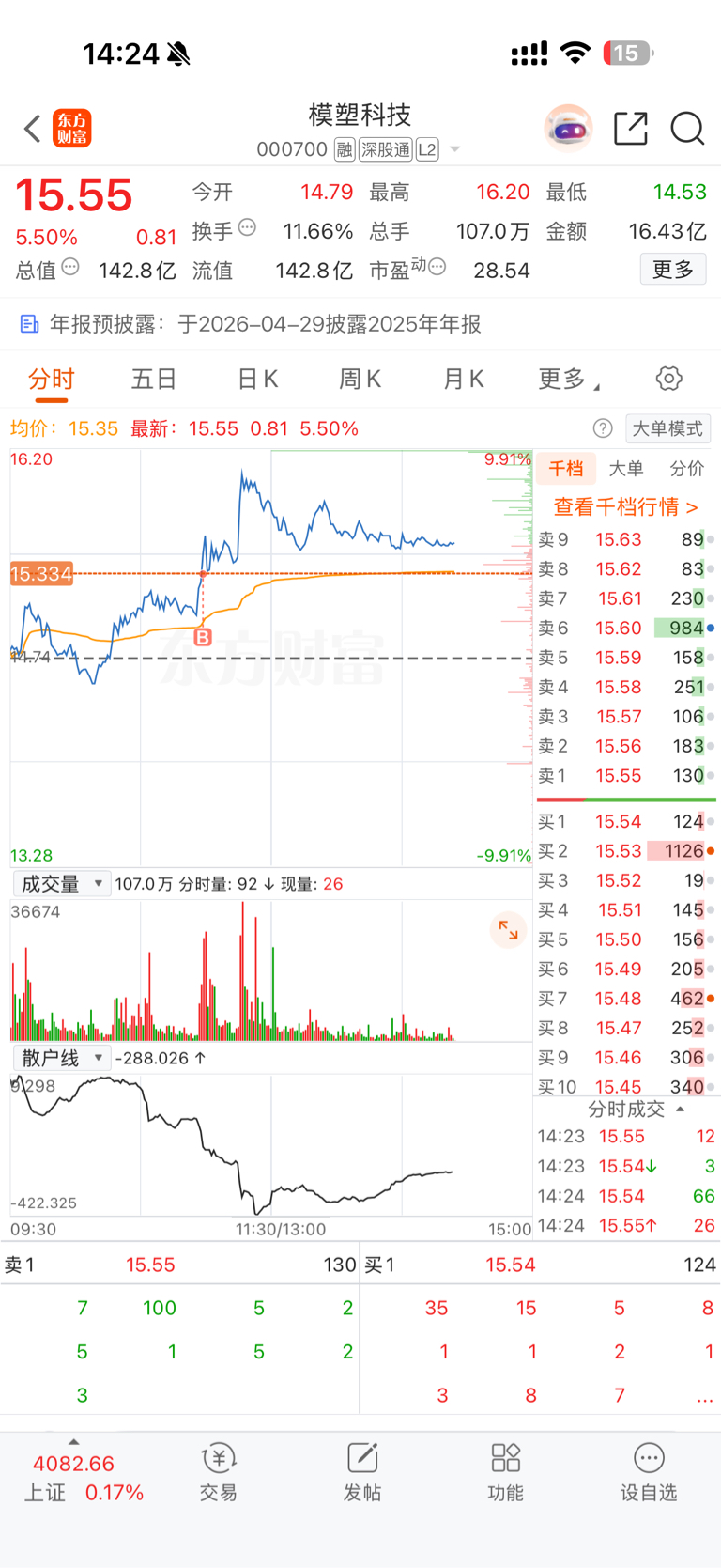 $模塑科技(SZ000700)$ 看样子今天就是假突破 真出货了 老规矩 下周一竞价挂跌停板跑路