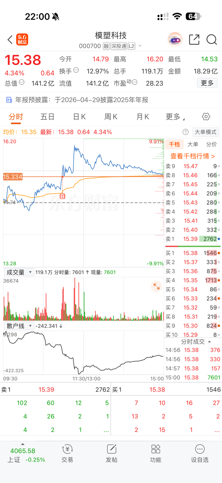 $模塑科技(SZ000700)$ 如果周一不是高开秒板 周五的上影线就是出货 反之吸筹 明天大家要毫不犹豫手起刀落该割肉割肉该追涨追涨