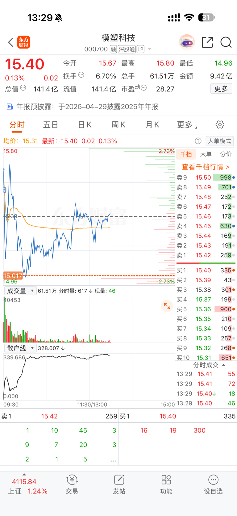 $模塑科技(SZ000700)$ 遇事不决先出一半 竞价跑一半 没意思 ai应用开得太高 还有半仓没得玩 没意思