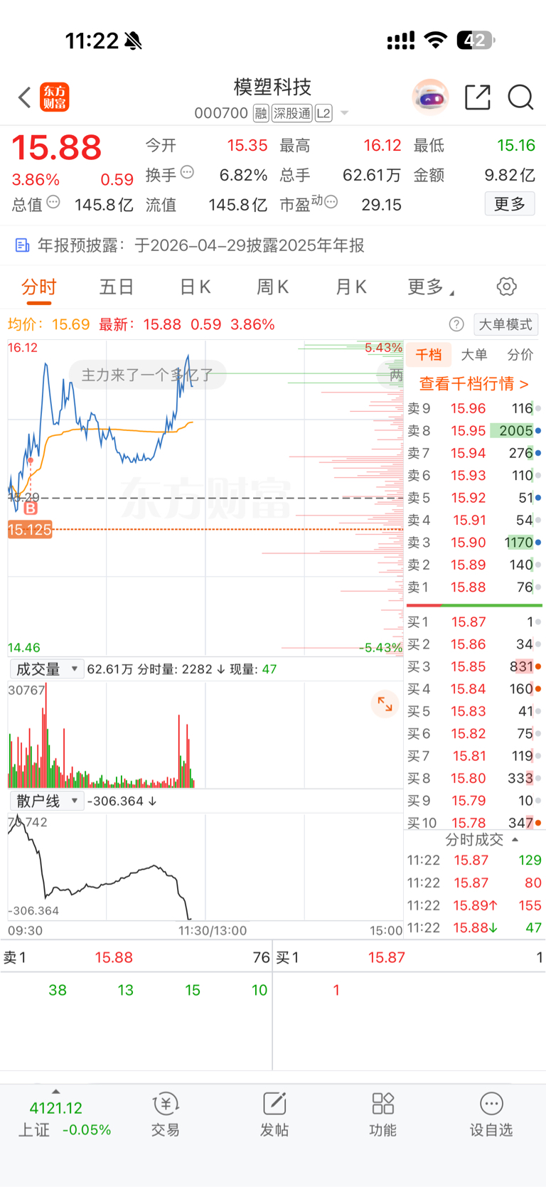 $模塑科技(SZ000700)$ 下午盘开盘秒板 就这一条路 不走这一条路的话 下午t掉