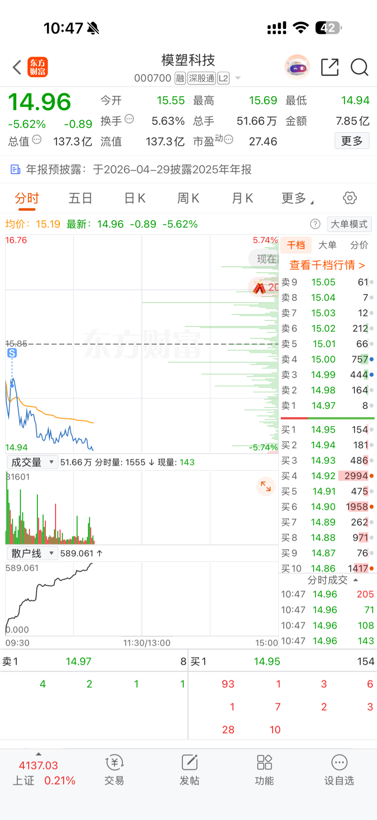 $模塑科技(SZ000700)$ 还好啊 小亏2个点跑了 这主力太恶心了 跌停板了今天