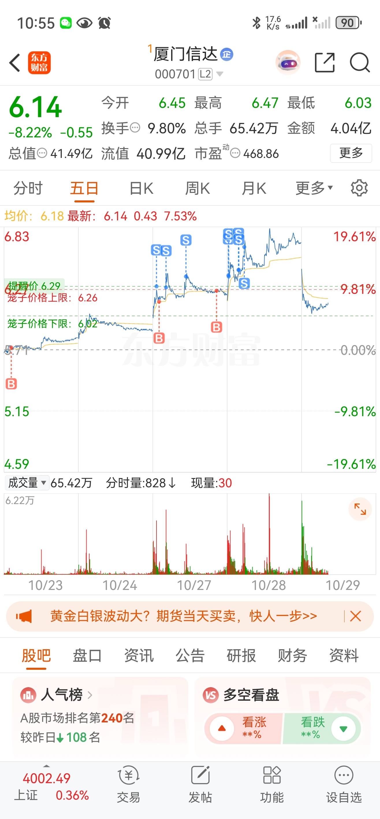 $厦门信达(SZ000701)$ 还好卖飞了没接回,不然今天拍断大腿
