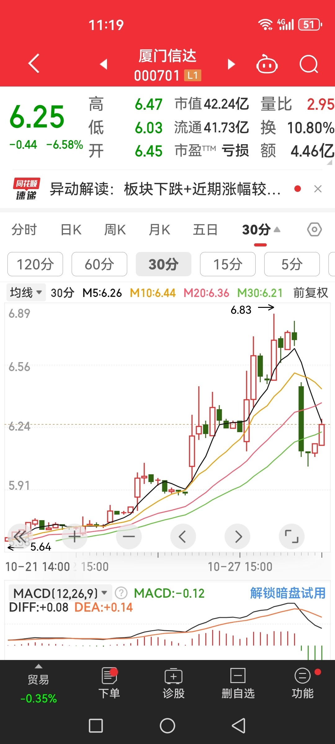 $厦门信达(SZ000701)$ 反抽结束,下午继续沿着均线下跌