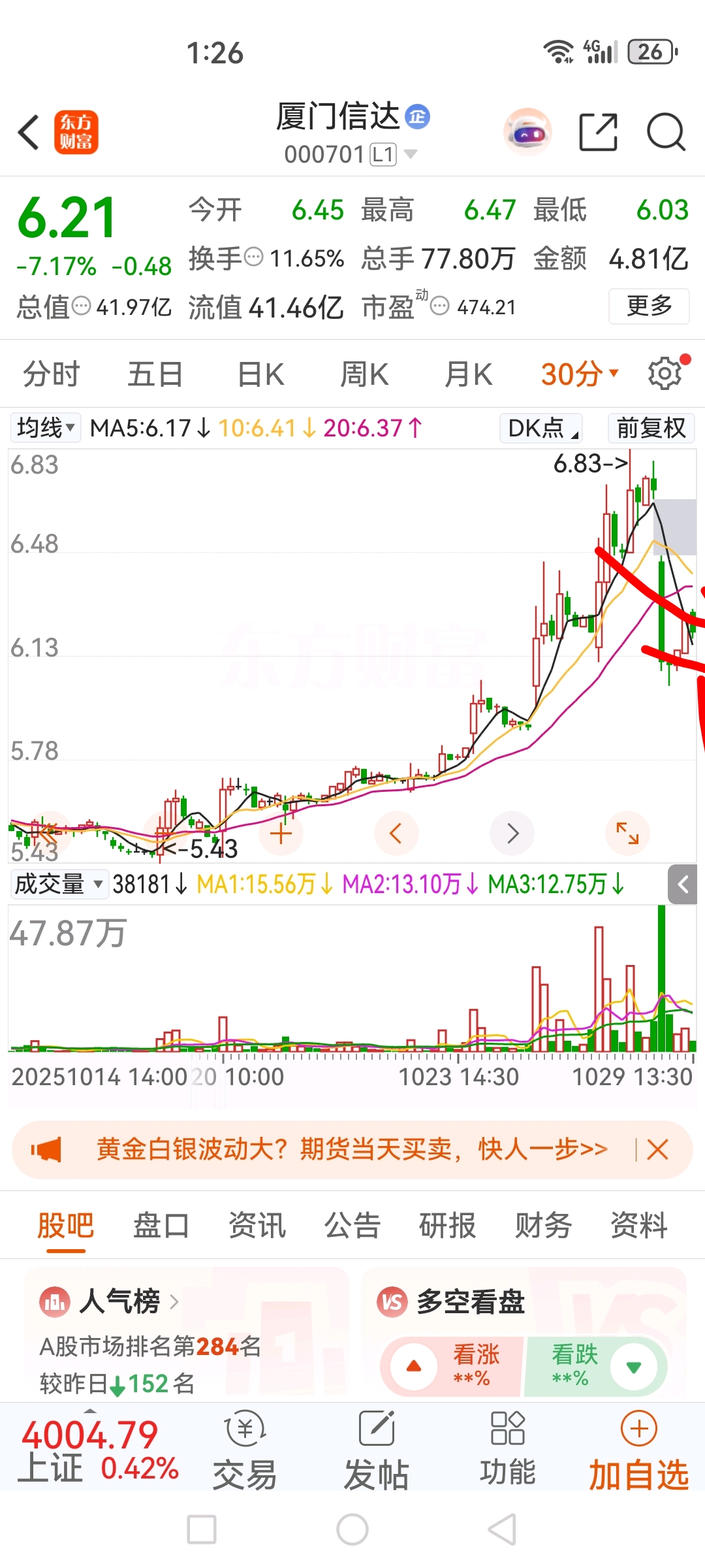 $厦门信达(SZ000701)$ 准备暴跌五分钟macd死叉了