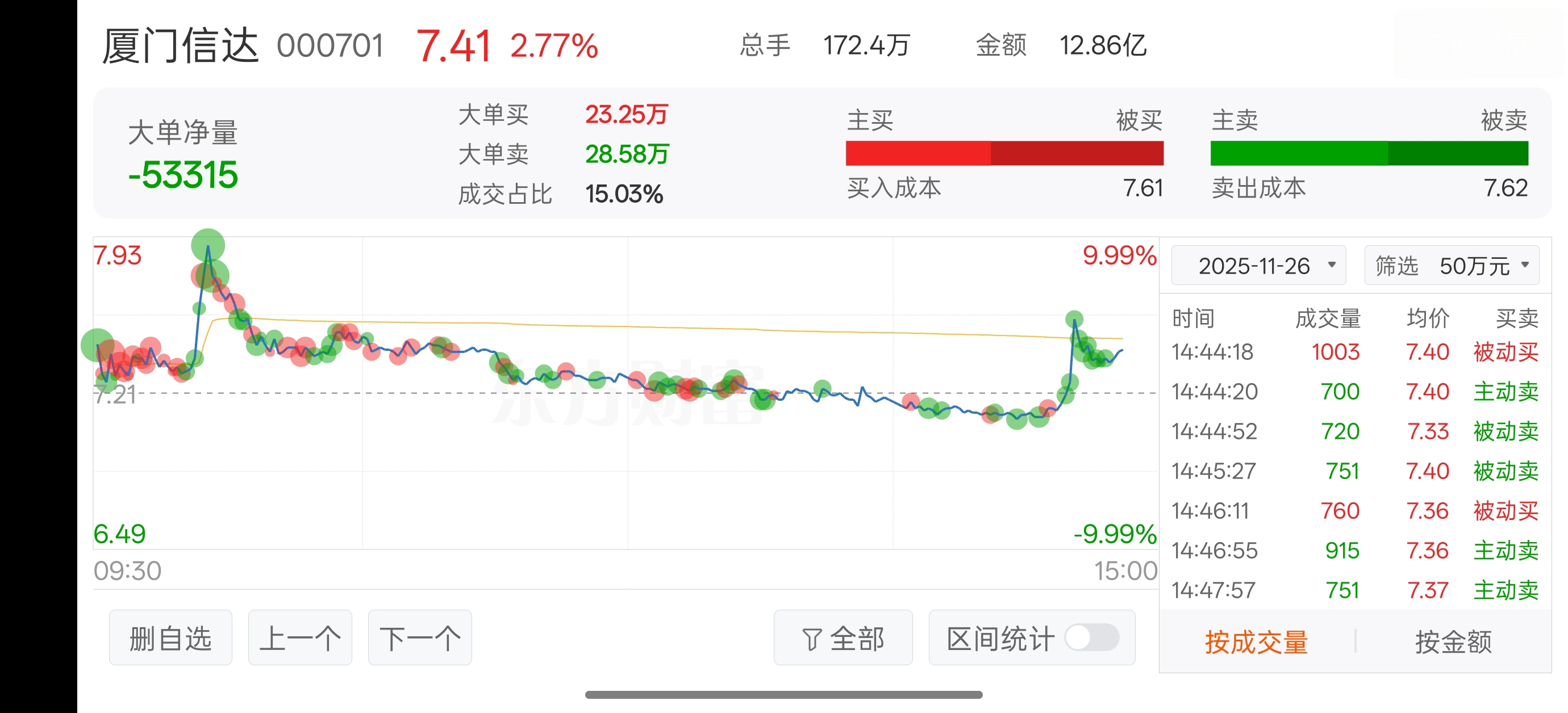 $厦门信达(SZ000701)$ 看看大单都是在什么波段进行出货的,典型