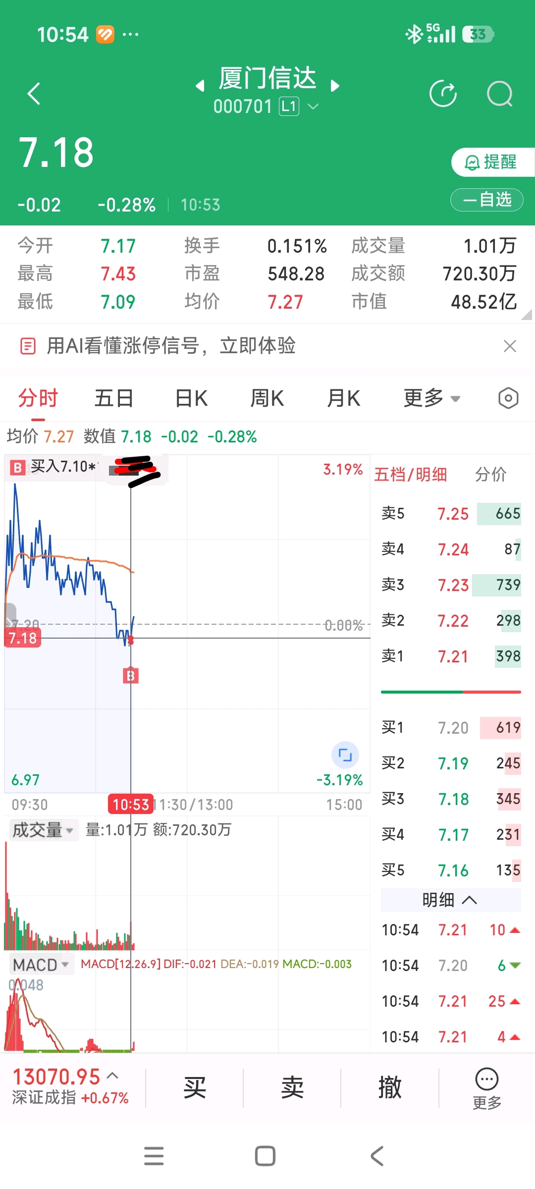 $厦门信达(SZ000701)$ 这么是怎么成交的?没人7.1卖啊!
