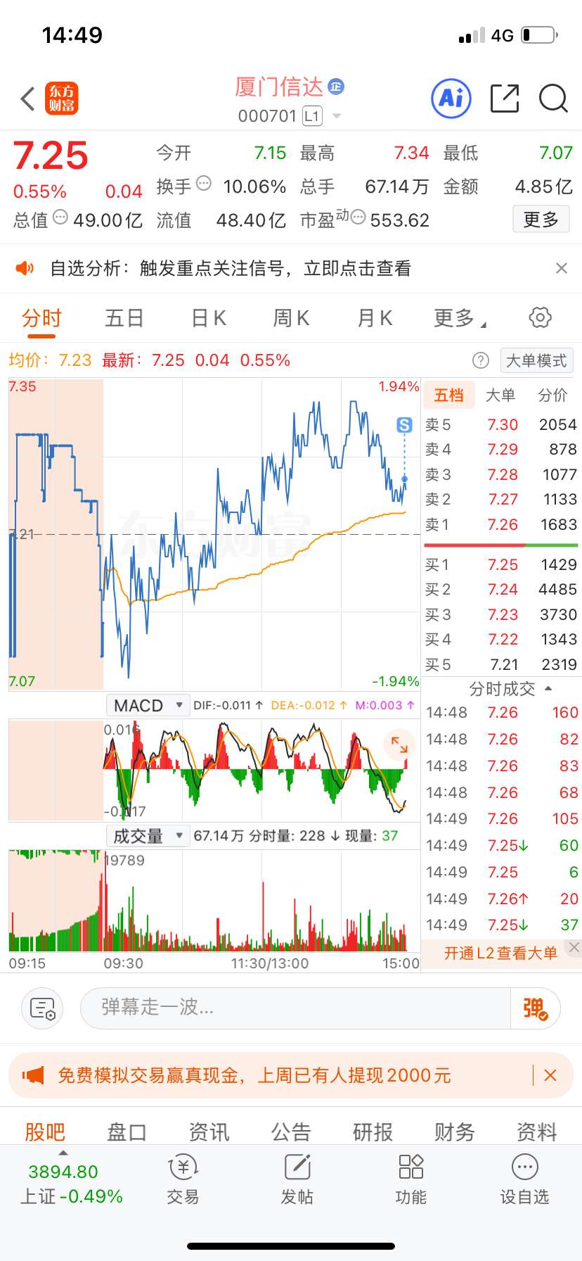 $厦门信达(SZ000701)$ 走了,这票没意思,磨磨唧唧的