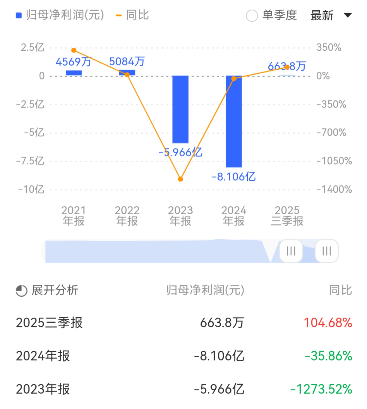 2025年前三季度,公司营业收入为269.21亿元,同比下降21.35%;归母净利润为663.75万元,同比增长104.75%;扣非归母净利润为-1.26亿元,同比增长55.96%。