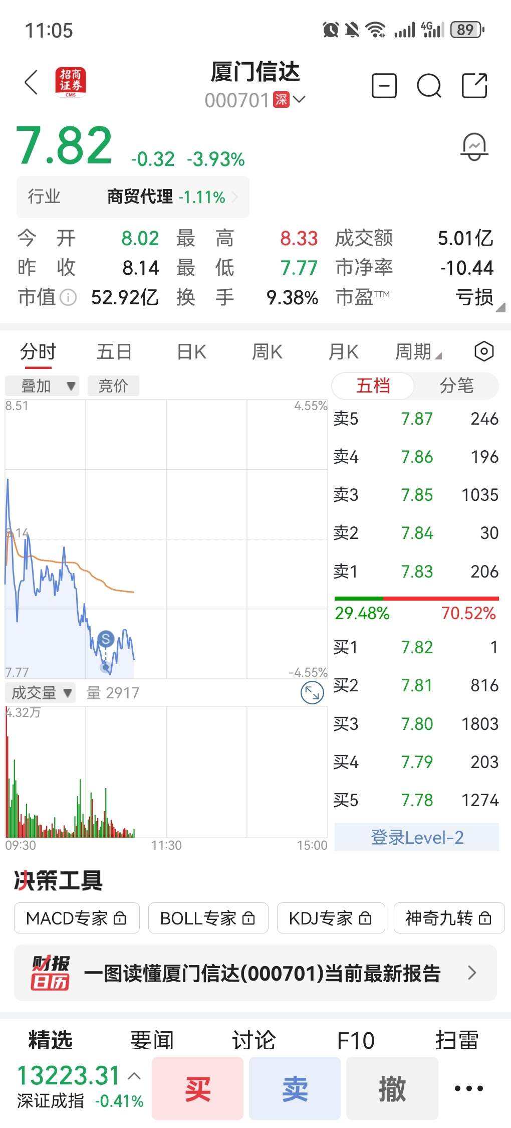 $厦门信达(SZ000701)$ 被吓跑了,卖在最低点
