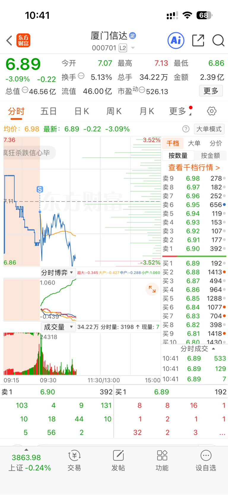 $厦门信达(SZ000701)$ 屋漏偏逢连夜雨,这主力够狠,把家人整够呛,我也吃一闷棍。。。