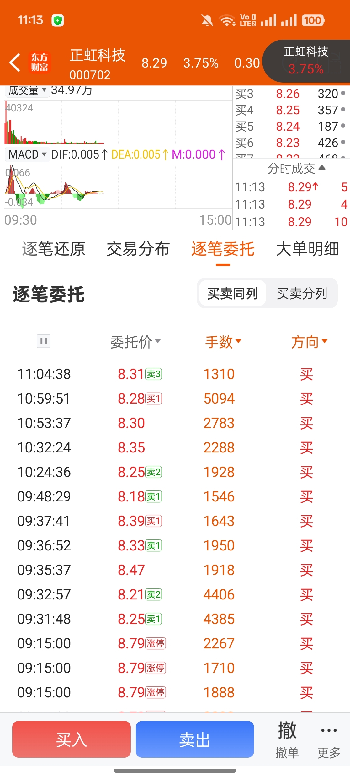$正虹科技(SZ000702)$ 大家不要被骗筹了,主力吸筹都不装了!有人利用大家托单必跌的思维骗筹,托单一般都是分散的,刚才那个5000手是一单!!!别人敢拿500万明牌干(私下还不知道有多少),我们这三瓜两枣还怕个锤子!