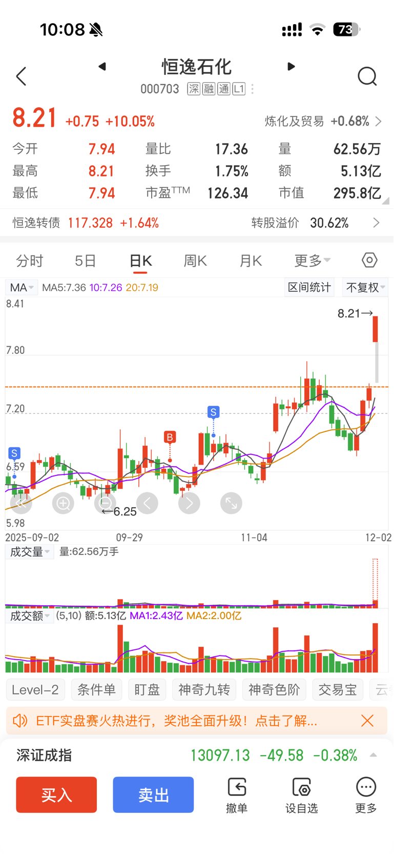 $恒逸石化(SZ000703)$ 讲点让你们开心的事,又踏空了。