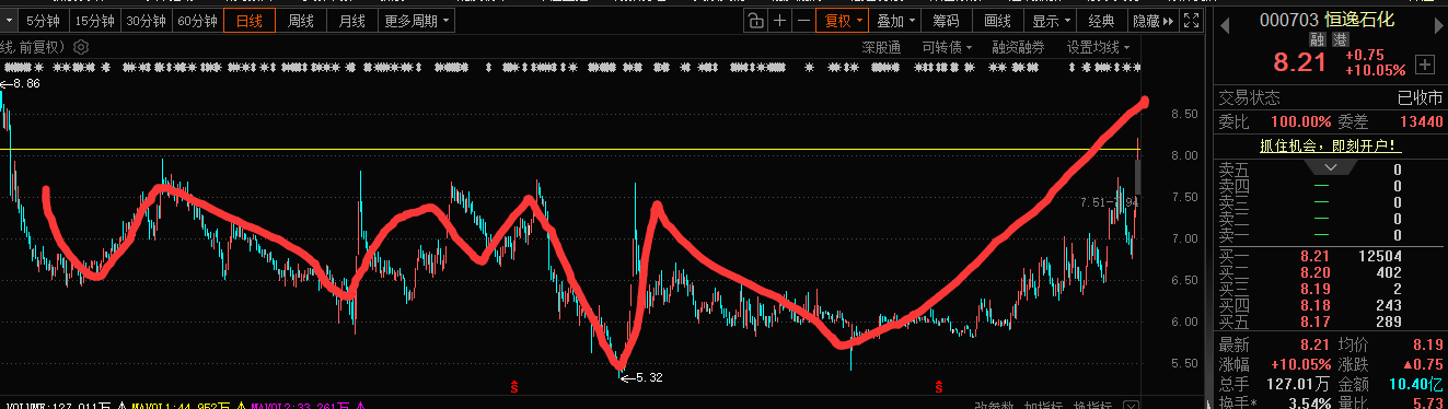 恒逸石化、胜利精密黄线(庄家成本线),自救回血,回血结束,卖出了结。