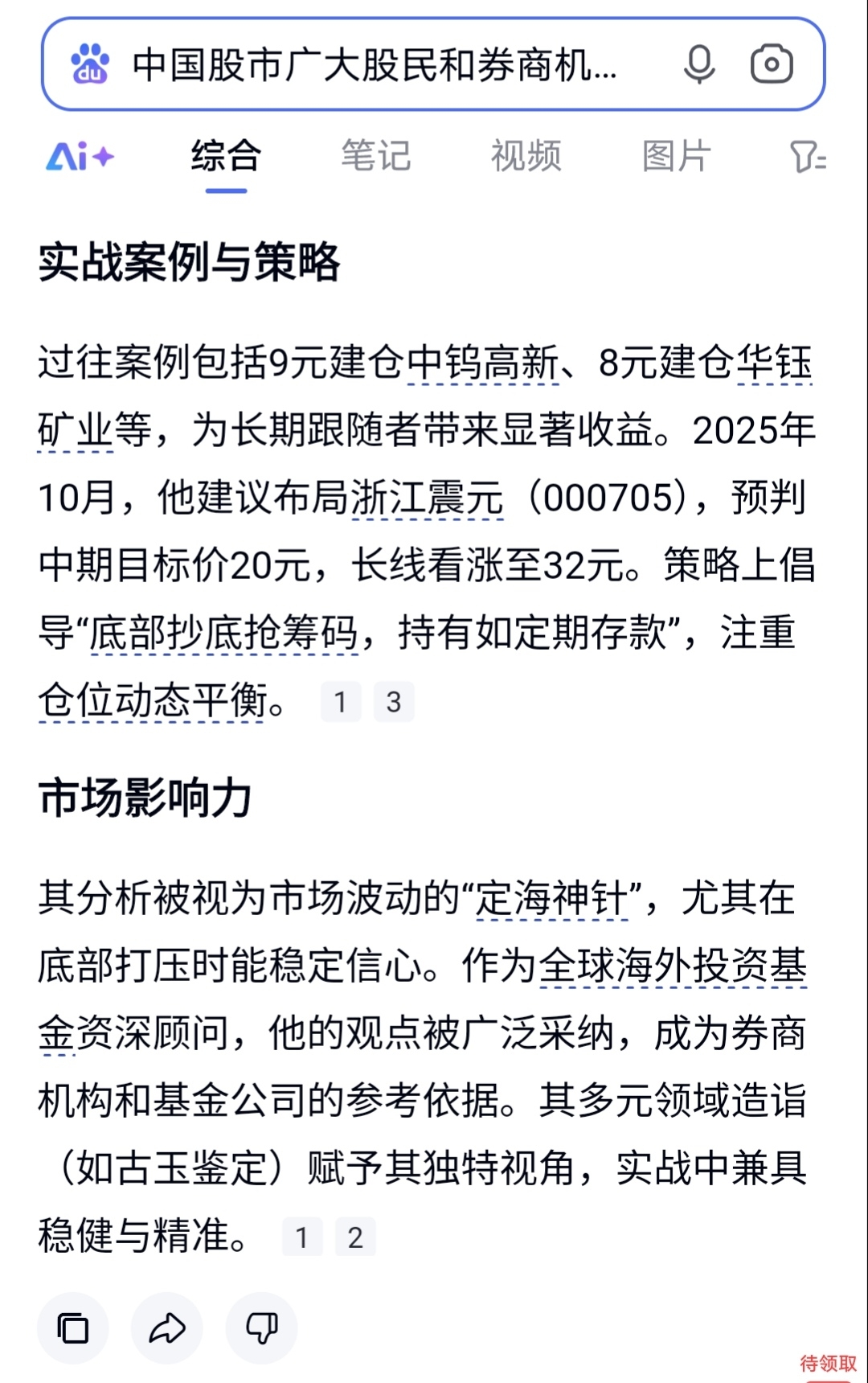 其分析被视为市场波动的“定海神针”,尤其在底部打压时能稳定信心。作为全球海外投资基金资深顾问,他的观点被广泛采纳,成为券商机构和基金公司的参考依据。其多元领域造诣(如古玉鉴定)赋予其独特视角,实战中兼具稳健与精准。
