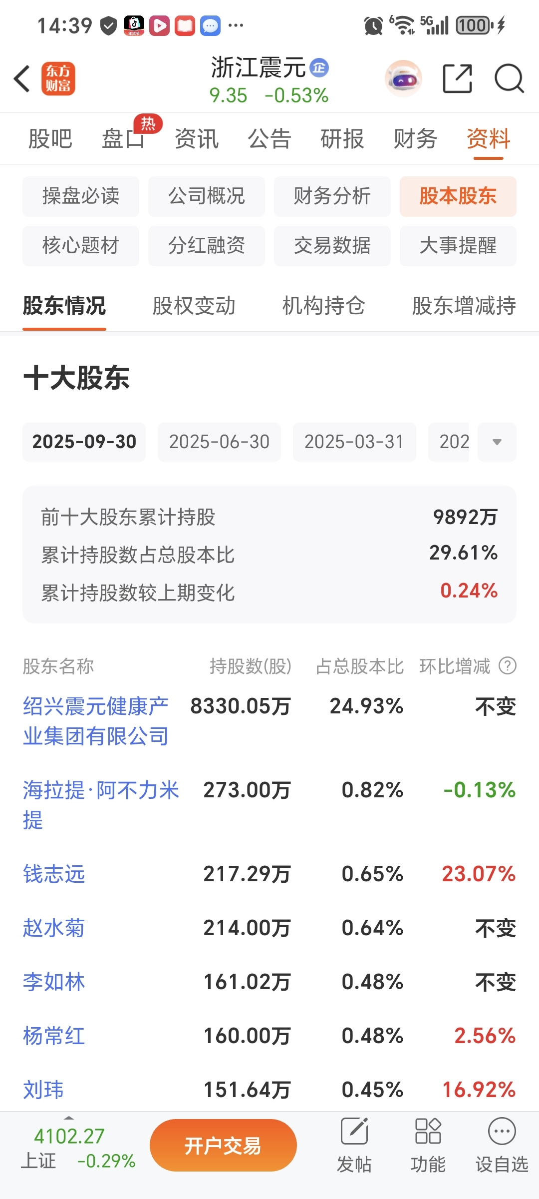 $浙江震元(SZ000705)$ 这几个大户被套了,笑死