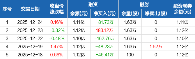 双环科技:融资净偿还81.72万元,融资余额1.11亿元(12-24)