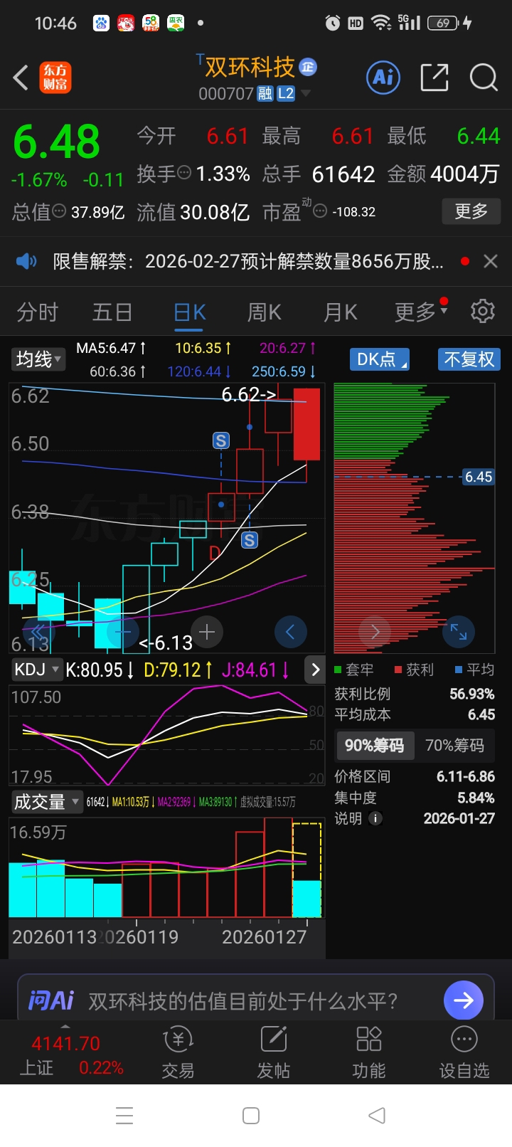 $双环科技(SZ000707)$ 前几天的卖出就是等你下跌,请再跌一点。