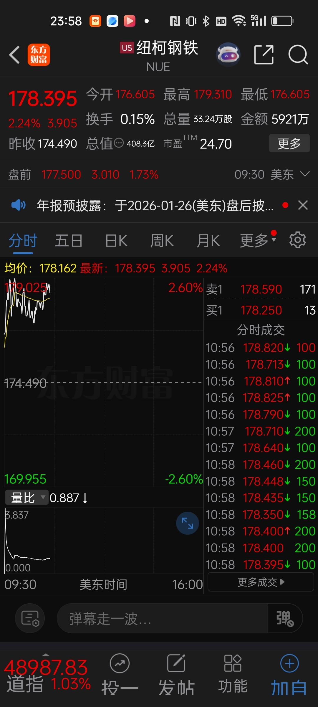 $中信特钢(SZ000708)$ 美国钢铁制造商纽柯钢铁公布第三季度业绩,收入同比增长14%,达到85.2亿美元,高于分析师平均预期的81.6亿美元;每股收益为2.63美元,亦高于预期的2.19美元。期内,钢厂的总发货量同比增长12%,达到约640万吨;外部平均销售价格上涨5%,收入跟中信特钢差不多吧,利润也差不多,而纽柯钢铁股价178美刀。中信特钢严重低估。