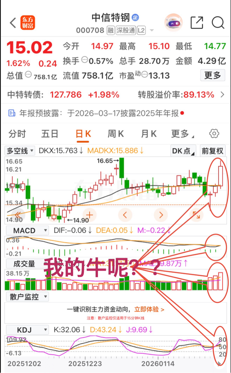 $中信特钢(SZ000708)$ 上了鬼子的当噢,这图怎么看也不像会跌停啊…钱没亏多少,但把整个人都搞抑郁了。