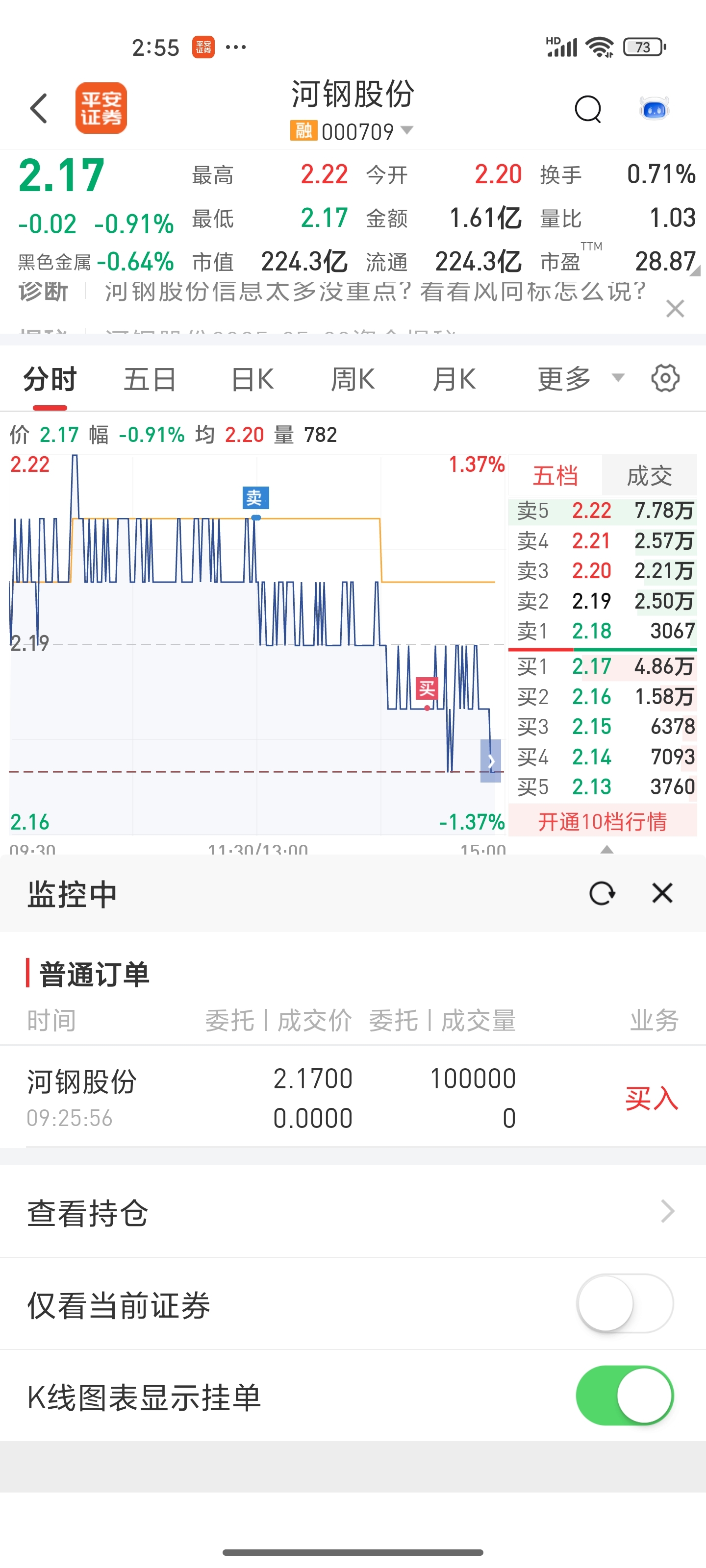 成交了二,早盘提交的单子还没成交