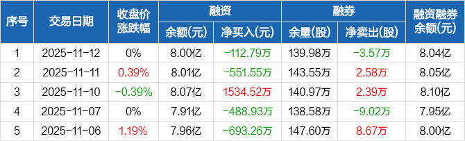 河钢股份:融资净偿还112.79万元,融资余额8亿元(11-12)
