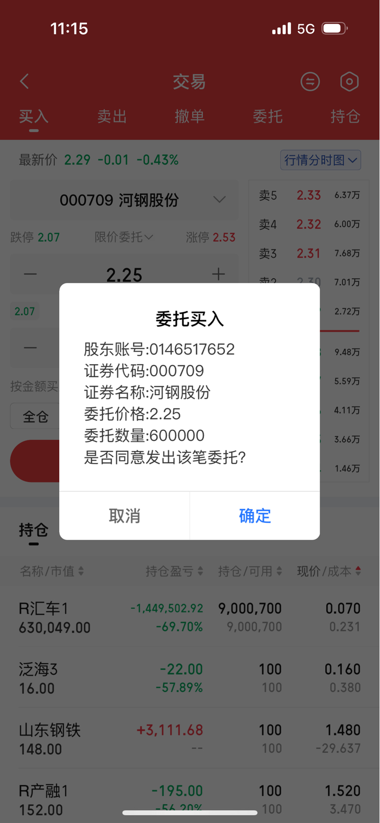 2.25元60万股,挂单等待中。下个目标2.20元,120股。